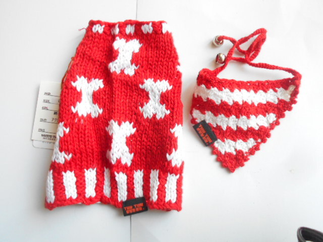 - パピー 超小型犬 TUKTUKーMA ラメ入素材 スカーフ付きセーター XXS レッド/ホワイト