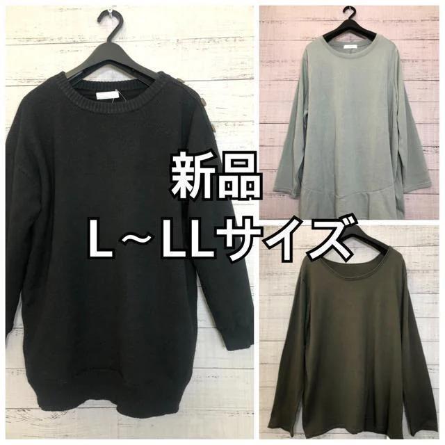 - 新品☆L~LL♪ニットなど3枚セット♪裏ベロアニットも♪☆y426