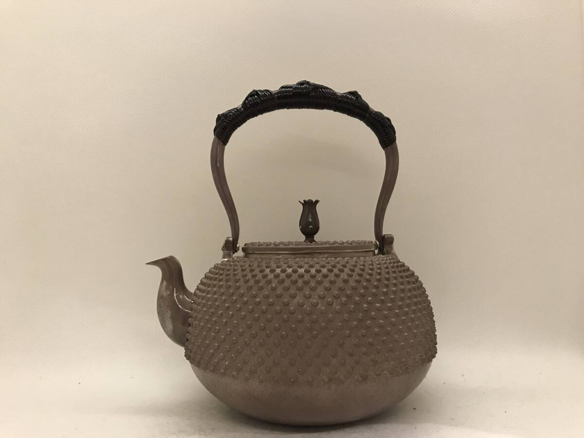 - 純銀製 光南 釜形霰打出 蕾摘 銀瓶 煎茶道具 箱付