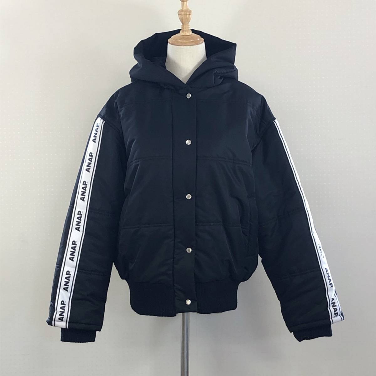 > YZ0375 ANAP アナップ レディース アウター 中綿ジャケット 長袖 ショート丈 Fサイズ フリーサイズ ブラック 黒 ホワイト 白 カジュアル