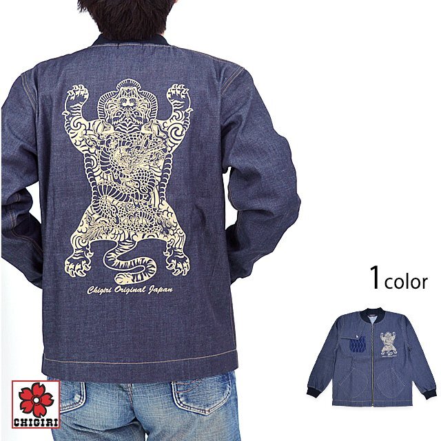 - デニムコーチジャケット◆CHIGIRI インディゴMサイズ CHL60-168 和柄 和風 ちぎり チギリ チベタン 虎 タイガー