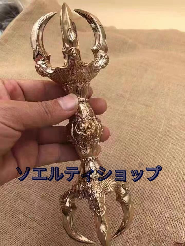- 【密教法具・寺院用仏具】お盆用品 仏具 お彼岸 寺院仏具 鬼面型 金剛五鈷杵 銅製 磨き仕上げ 長さ23cm