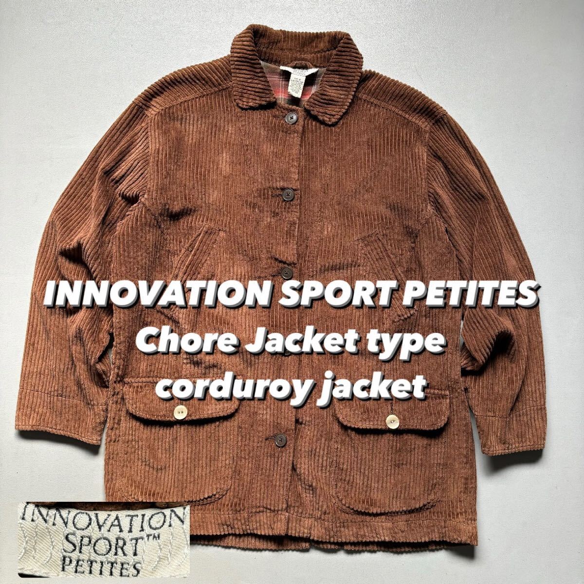 > INNOVATION SPORT PETITES Chore Jacket type corduroy jacket コーデュロイジャケット カバーオール型 茶色 ブラウン 太畝 長袖