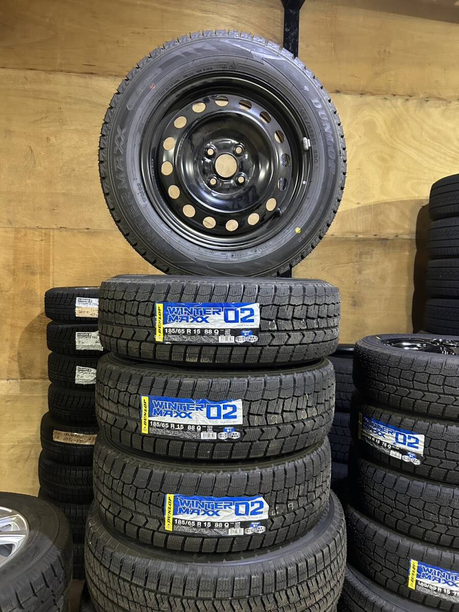 > 中古冬タイヤホイールセット 185/65R15 DUNLOP WINTER MAXX02 15x6+40 4/100 スチールホイール 4本セット 送料安★☆