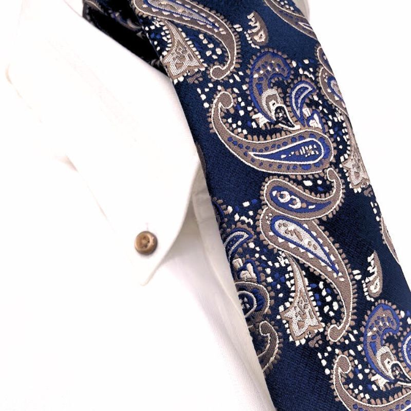 - メンズ ネクタイ ネイビー×ベージュ ペイズリー柄 ビジネス おしゃれ カジュアル スリム【color 16】