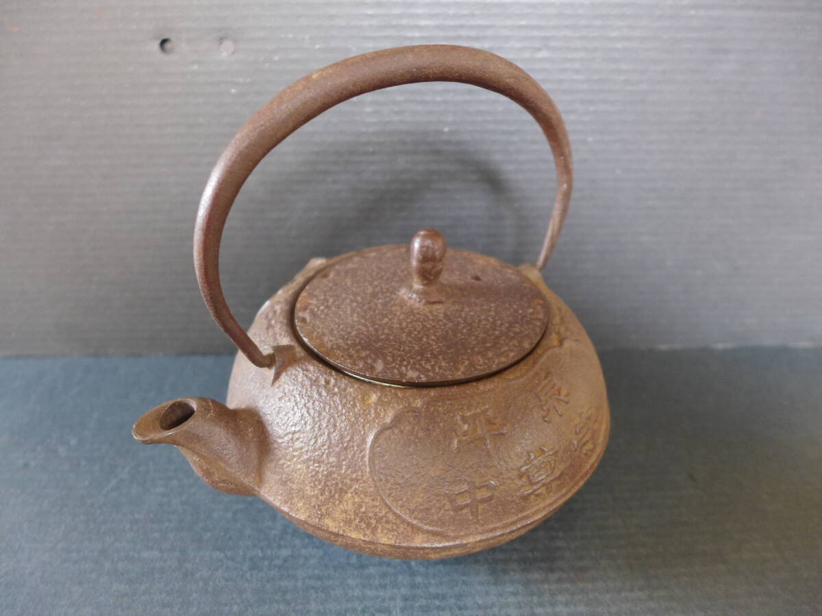 - ★ 時代物 鉄瓶 平丸型 平泉中尊寺・金色堂装飾入り 南部鉄器 金属工芸 レトロ アンティーク ★