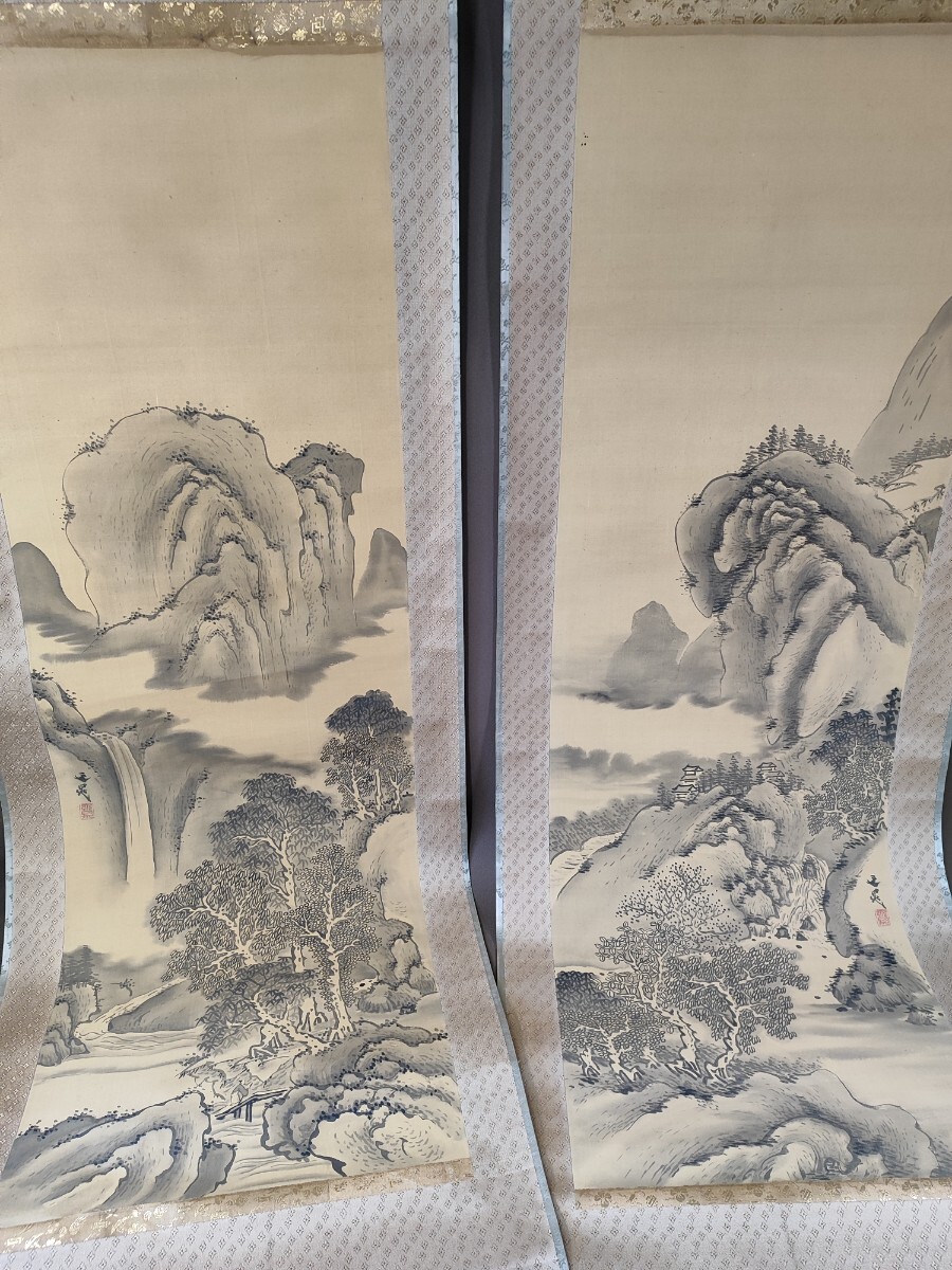 - k2 谷文晁 山水図 二幅対 掛軸 模写 古美術 骨董