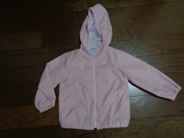 > ファミリア*90cm*ウインドブレーカー*フード付き*パーカー*シャカシャカ*薄手*刺繍*ピンク