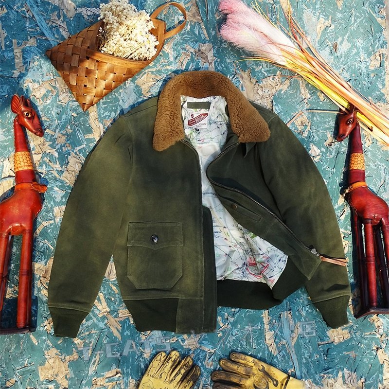- ☆新品G9レザージャケット 上品 本革 牛革スエードジャケット ウール襟 ライダースジャケット 革ジャン S~4XL グリーン