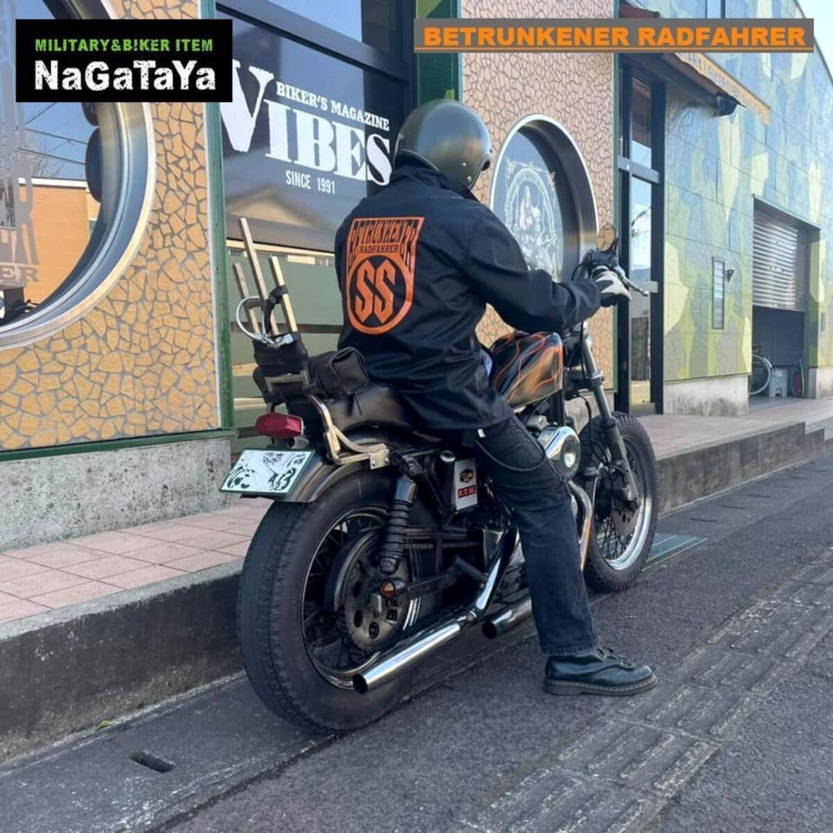 > BETRUNKENER RADFAHRER ベェトォンナ ラドファ エンブレム コーチジャケット ブラック×オレンジ XXLサイズ BIKER 大きいサイズ