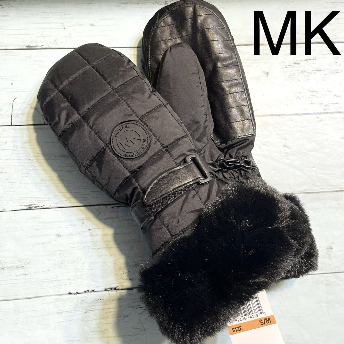 - 防寒 ブラック ミトン グローブ 正規 手袋 ナイロン レザー プレゼント ブランド マイケルコース MK 新品 レディース ファー付 クリスマス