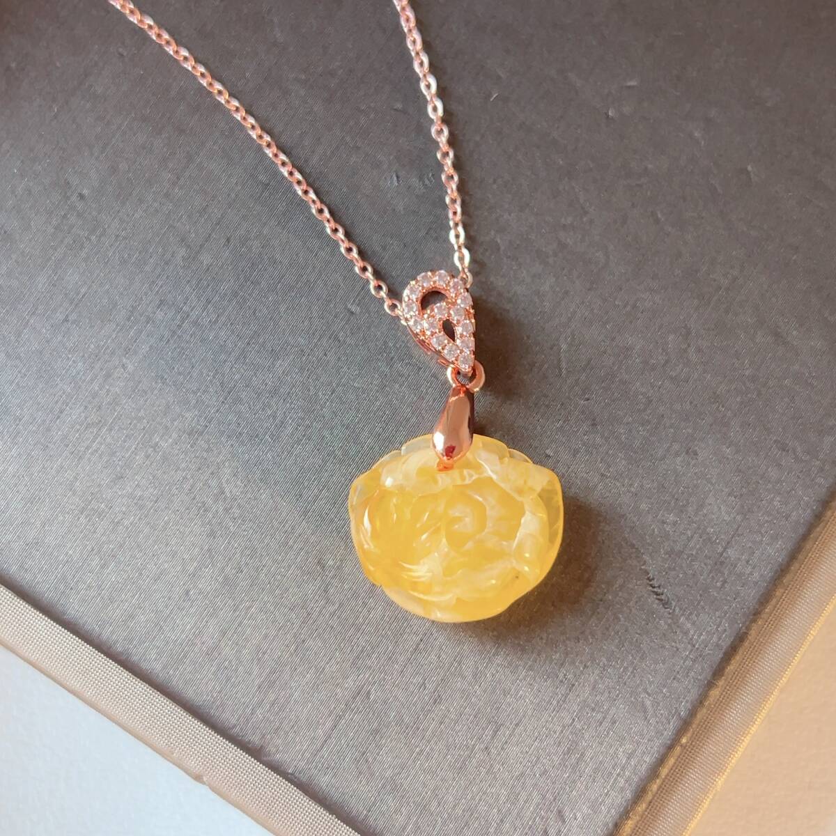 - ◇蜜蝋琥珀◇ネックレス◇ペンダント◇牡丹(ボタン)◇彫刻◇パワーストーン◇天然石◇巾着袋付き033P11295