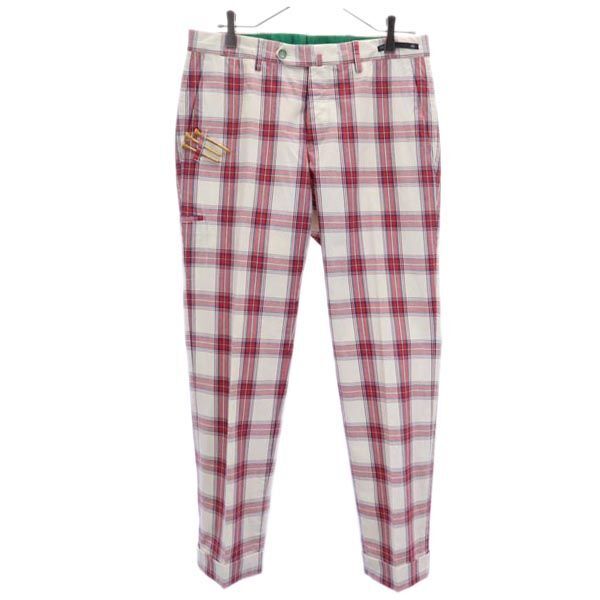 > ピーティーゼロウーノ チェック ゴルフ パンツ 46 ホワイト系×レッド系 PT01 ティー付き ボタンフライ メンズ