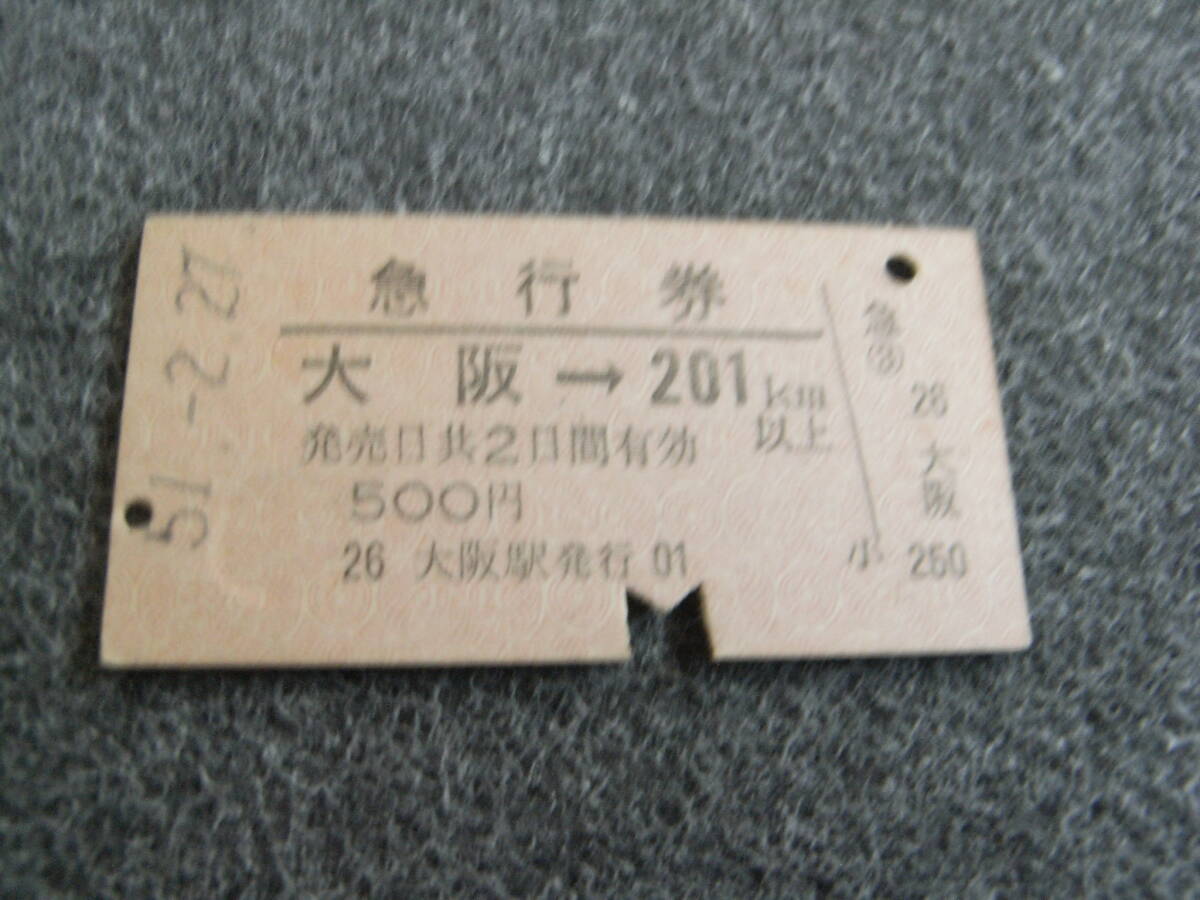 - 急行券 大阪→201km以上 昭和51年2月27日 大阪駅発行 国鉄