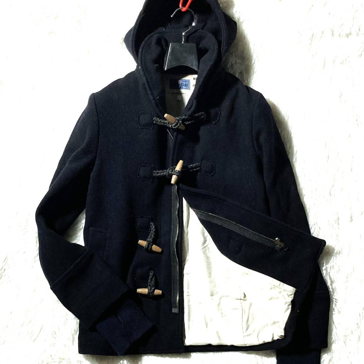 - BLUEBLUE★メルトンウール ダッフルコート デッキジャケット風 袖リブ ファスナー付 黒 S ブルーブルー BLUE ハリラン