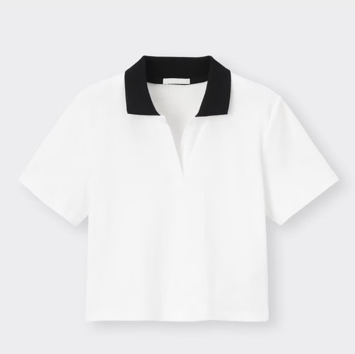 > ★ GU ジーユー バイカラースキッパーポロ(半袖) 白色/OFF WHITE サイズ:L寸 241-340062