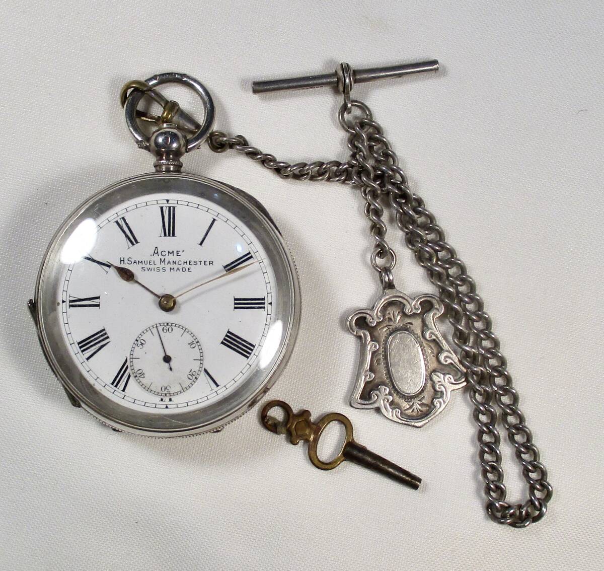 - ☆ 金片蓋側 鍵捲提時計 銀製鎖付 スイス製 19世紀末