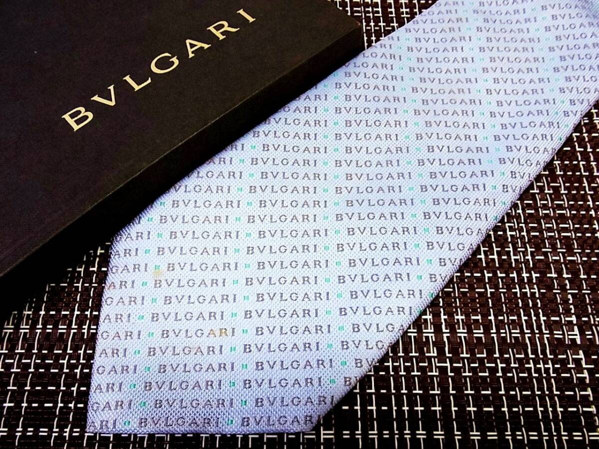 > ☆状態並N☆7030■【BVLGARI】ブルガリ 【人気の総ロゴ柄】「最高級セッテピエゲ」 ネクタイ