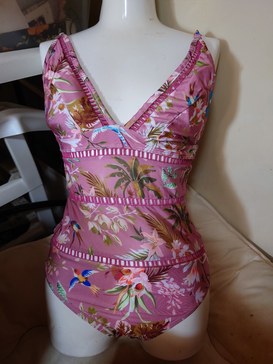 - M3306◆DHOLIC◆一部シースルー仕様◆セレブなピンク系花柄ワンピース水着◆7S