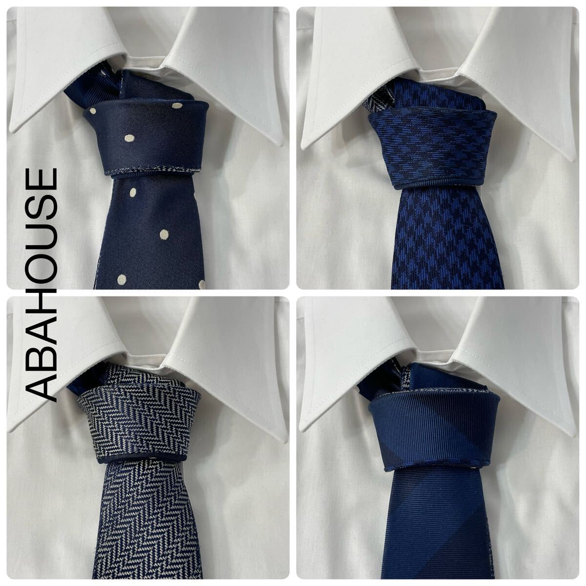 - ABAHOUSE アバハウス 4way デザイン シルク ネクタイ 日本製 ネイビー ホワイト TG574