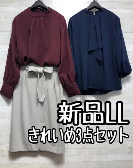 - 新品☆LL♪きれいめ3点セット♪ブラウス2枚&スリット入スカート〇A813