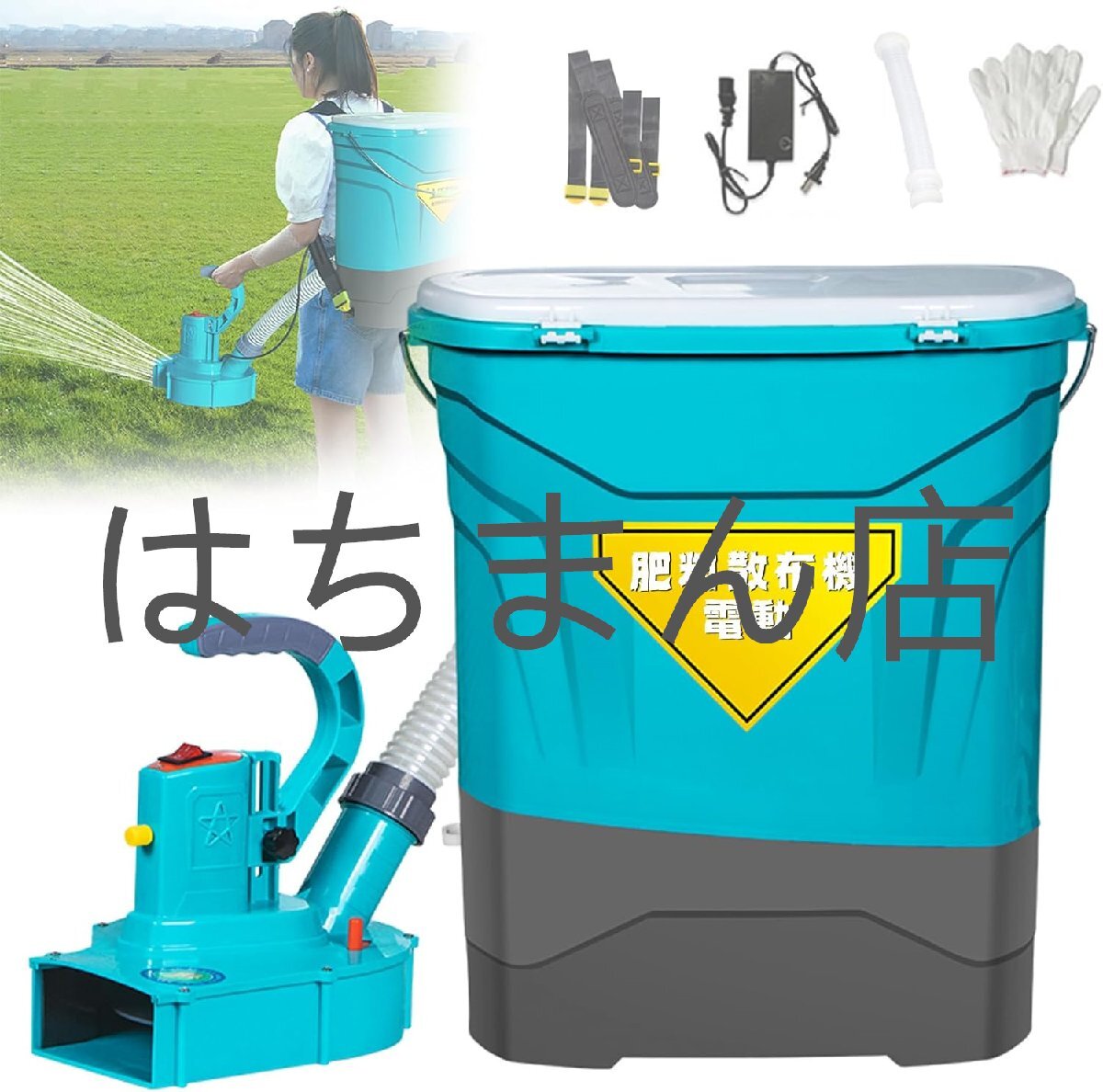 - 肥料散布機 電動 背負い式 焼砂・肥料 散布器 電池式散粒機 農業用 餌撒き 容量25L 散布範囲5m 多機能スプレッダー リチウム電池10A