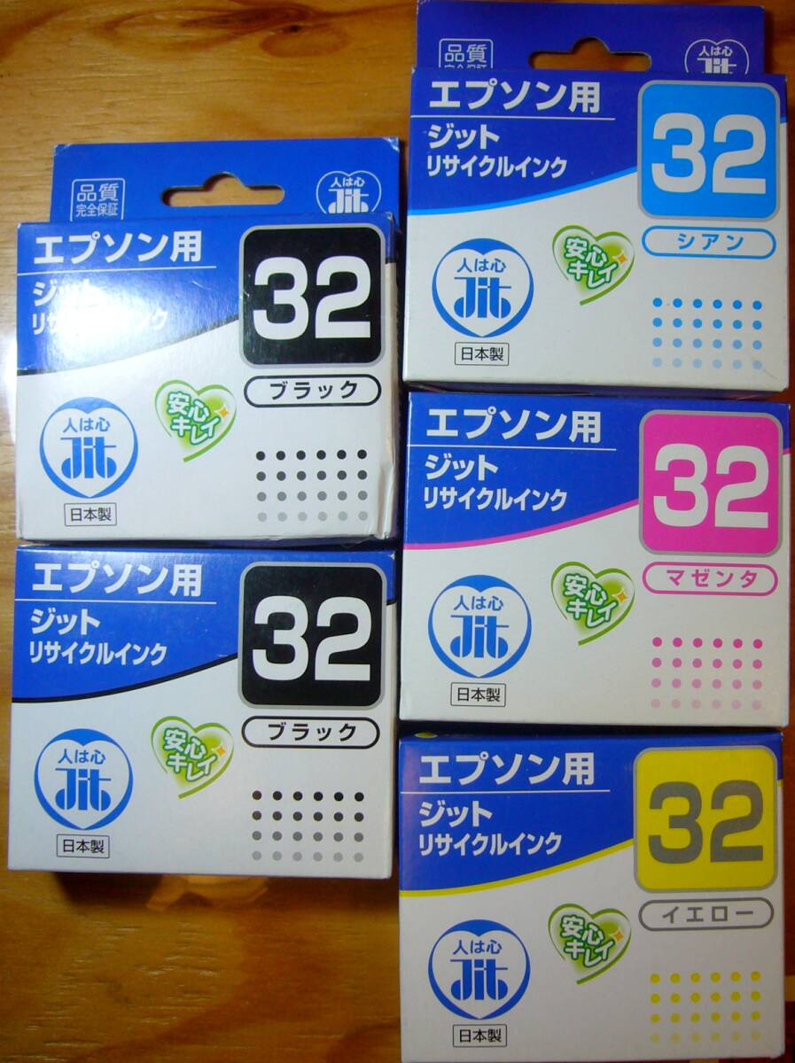 > エプソン インク 32 互換 5本セット(ブラックICBK32、シアンICC32、マゼンダICM32、イエローICY32)【推奨使用期限切れ】