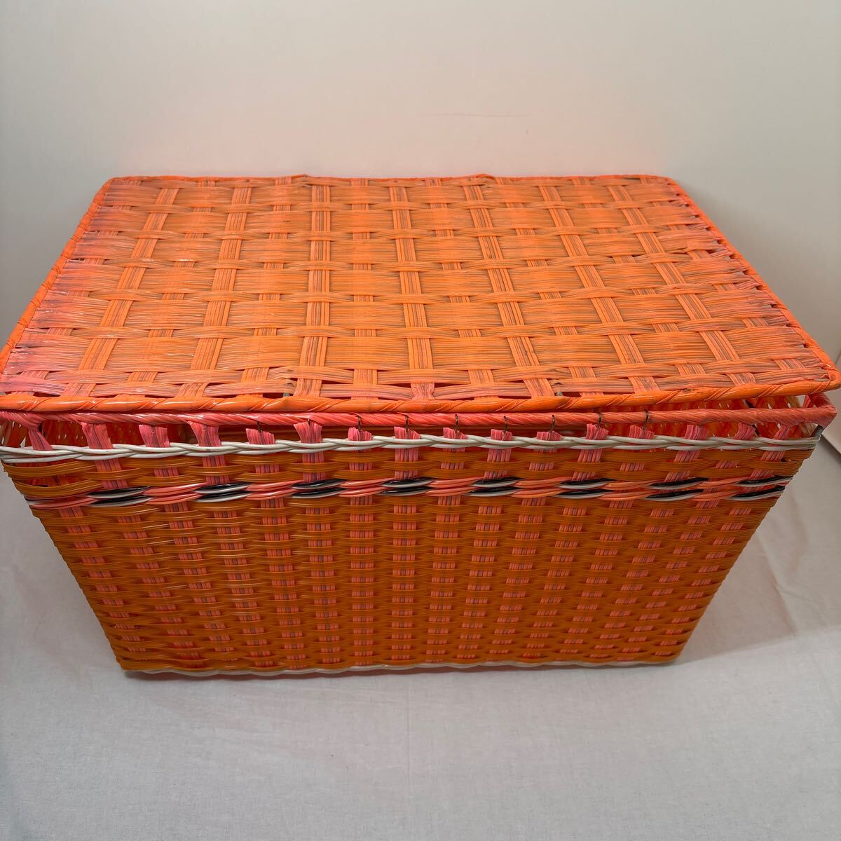 - ★大阪/店舗受け取り可★昭和レトロ バスケットケース 籠 約51cm×36cm×高さ28cm ビニール素材 編み込み アンティーク ボックス 箱 保管★