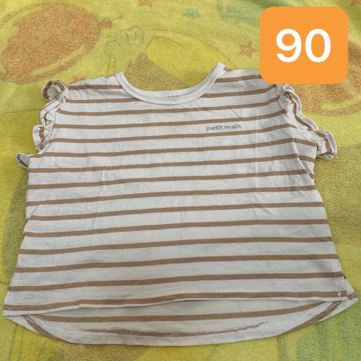 - petit main プティマイン ボーダー ベージュ×ホワイト Tシャツ 90
