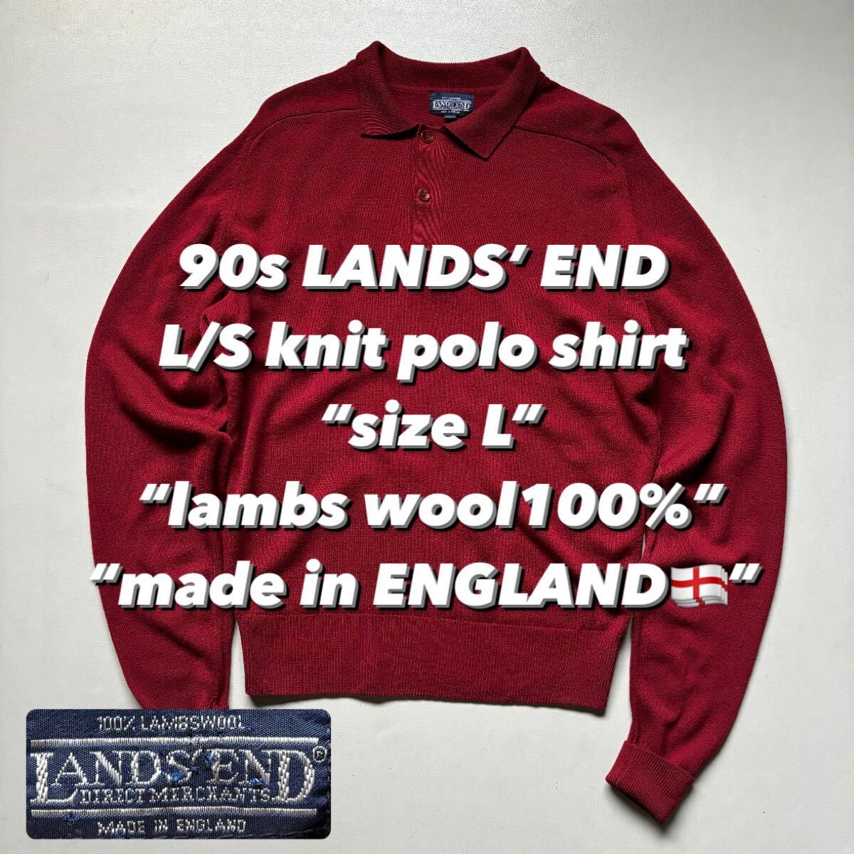 > 90s LANDS’ END L/S knit polo shirt size L ”lambs wool100%” 90年代 ランズエンド 長袖 ニットポロシャツ ラムウール バーガンディ