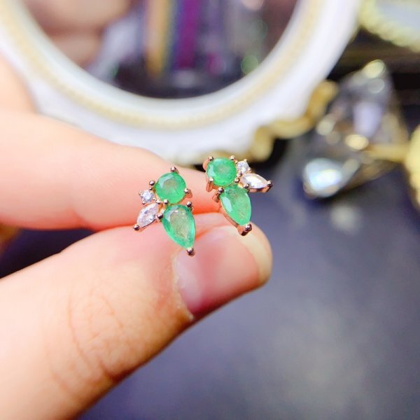 【証明書付き】コロンビアのナチュラルエメラルドピアス、4x4mm、4x6mm、925シルバー