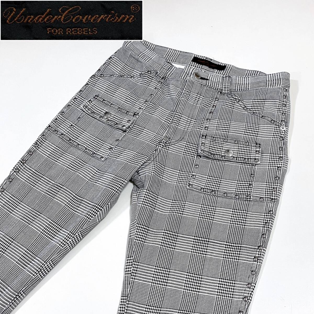 > 2004SS UNDERCOVER LANGUID 裾ジップ グレンチェック スタッズ スキニー ブッシュパンツ Mサイズ アンダーカバー VINTAGE archive 4100233