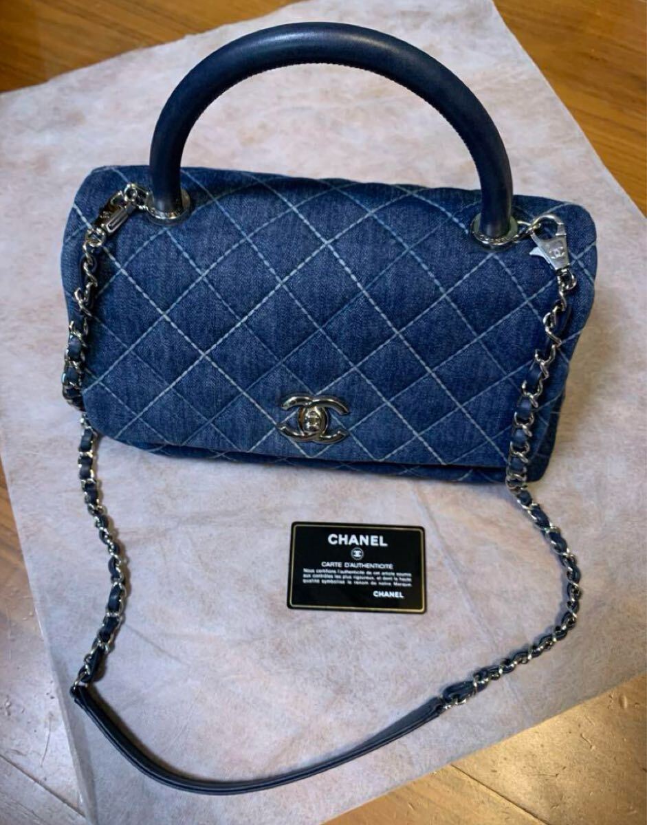 - シャネル ココハンドル29 S デニム ハンドバッグ ブルー シルバー金具