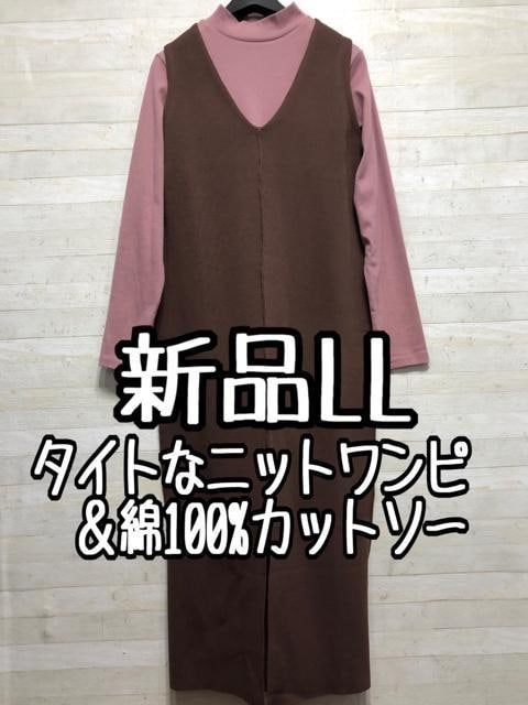 - 新品☆LL♪おしゃれ重ね着セット♪ロングニットワンピースも♪〇A860