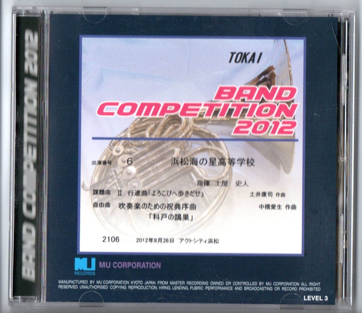 - 送料無料 CD 2012 東海吹奏楽コンクール 浜松海の星高等学校 土井康司:よろこびへ歩きだせ 中橋愛生:科戸の鵲巣~吹奏楽のための祝典序曲