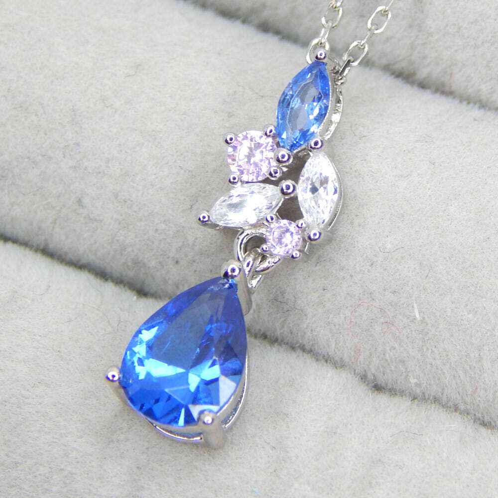 - 新品★送料無料 高品質 スターリングシルバー925刻印 サファイアピンク 雫 CZダイヤモンドネックレス レディース ジルコニア プラチナ仕上