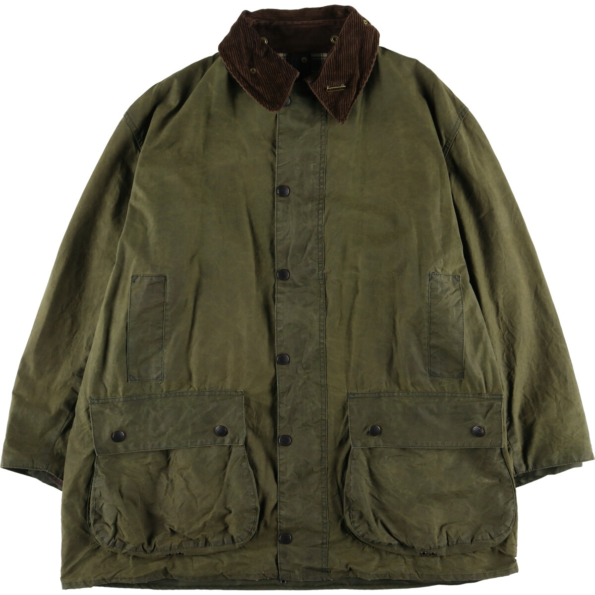 - 古着 80~90年代 バブアー ボーダー 旧3ワラント バッジ付き ワックスコットン オイルドジャケット 英国製 C46 メンズXL相当 /eaa506643