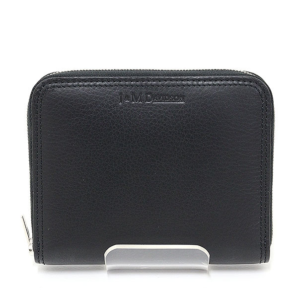 - J&M DAVIDSON スモール ジップ ウォレット 二つ折り財布 カーフ ブラック/レッド ラウンドファスナー 未使用品