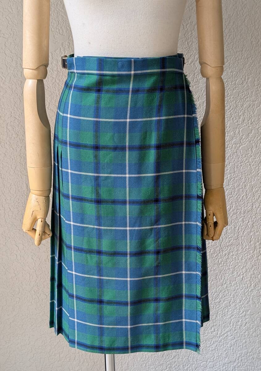 - ジャパンヴィンテージ70’s80’s スコットランド製キルトスカート タータンチェックウール/昭和レトロ古着イギリスパンクロックΓSD