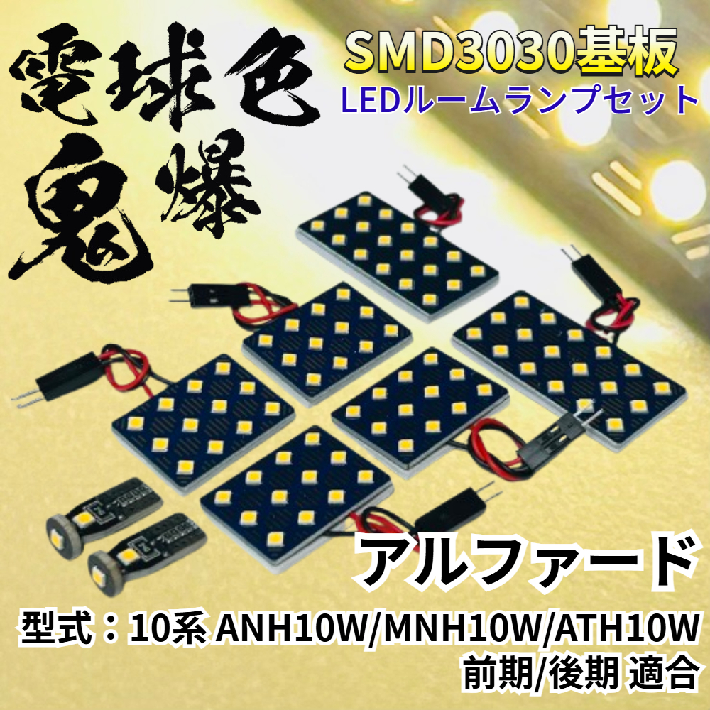 - 【電球色】10系 アルファード ANH10W/MNH10W/ATH10W 前期/後期 鬼爆基板 3030SMD LED ルームランプ セット 車内灯 パーツ アクセサリ