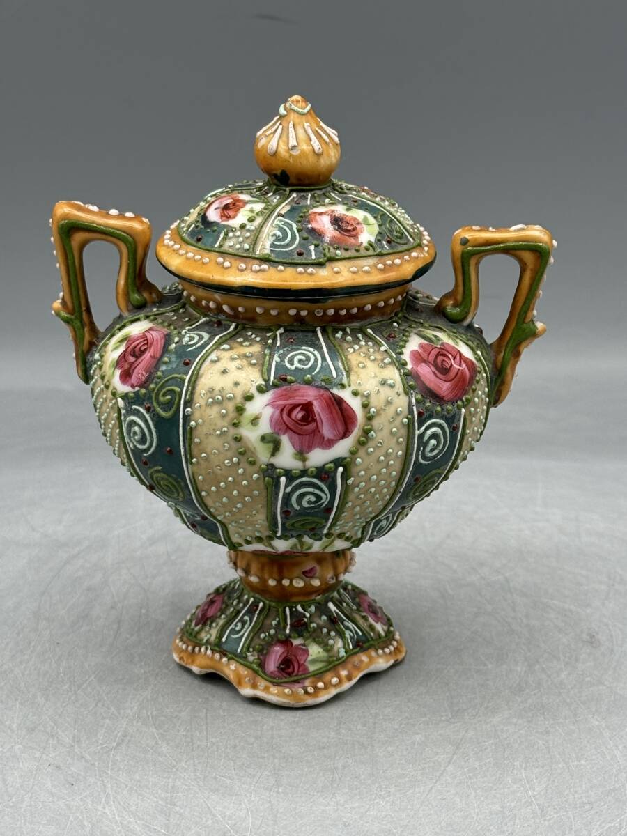 - 里帰り オールドニッポン 盛上 装飾 蓋付 小物入れ お花