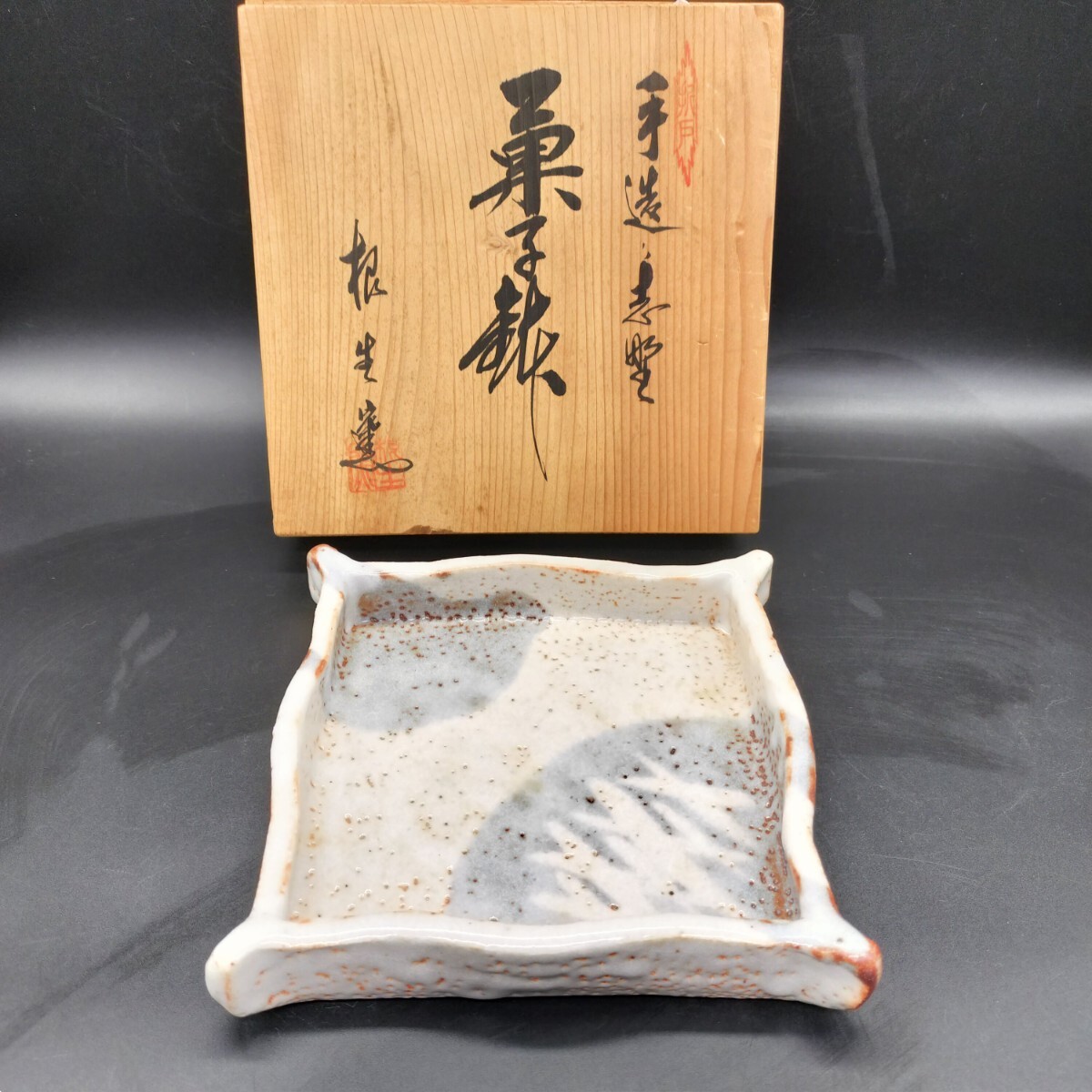 - 志野焼 菓子鉢 根生窯 盛皿 角皿 和食器 四方皿 美濃焼 タ10