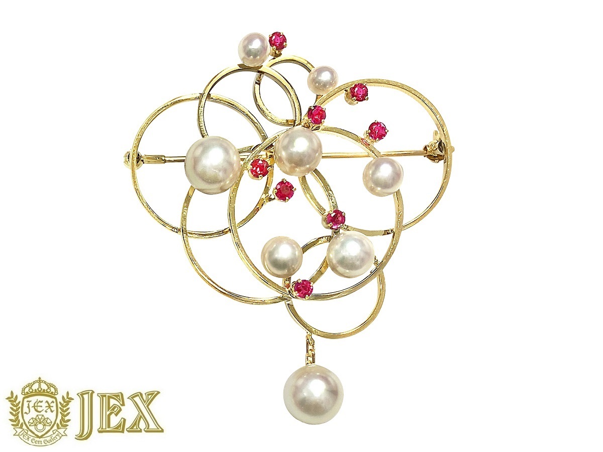 - MIKIMOTO ミキモト K18アコヤパール ルビーブローチ NO.62085-B