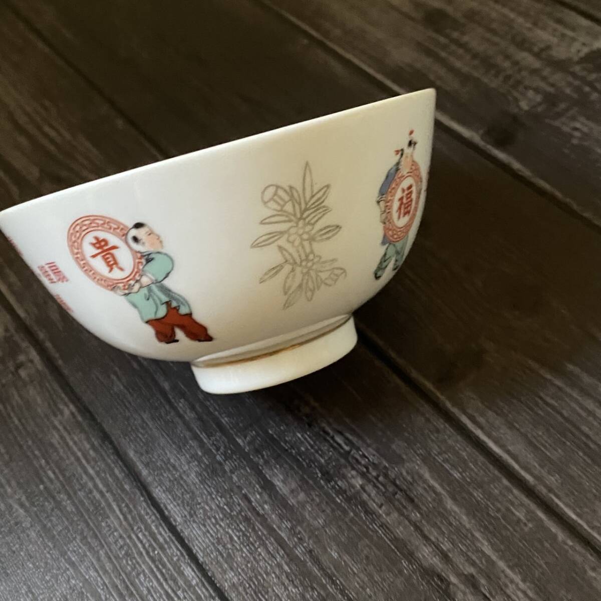 - ◆台湾レトロ◆大同◆企業文字入り お茶碗 福寿富貴 童子◆台湾食器◆ヴィンテージ fie086120j