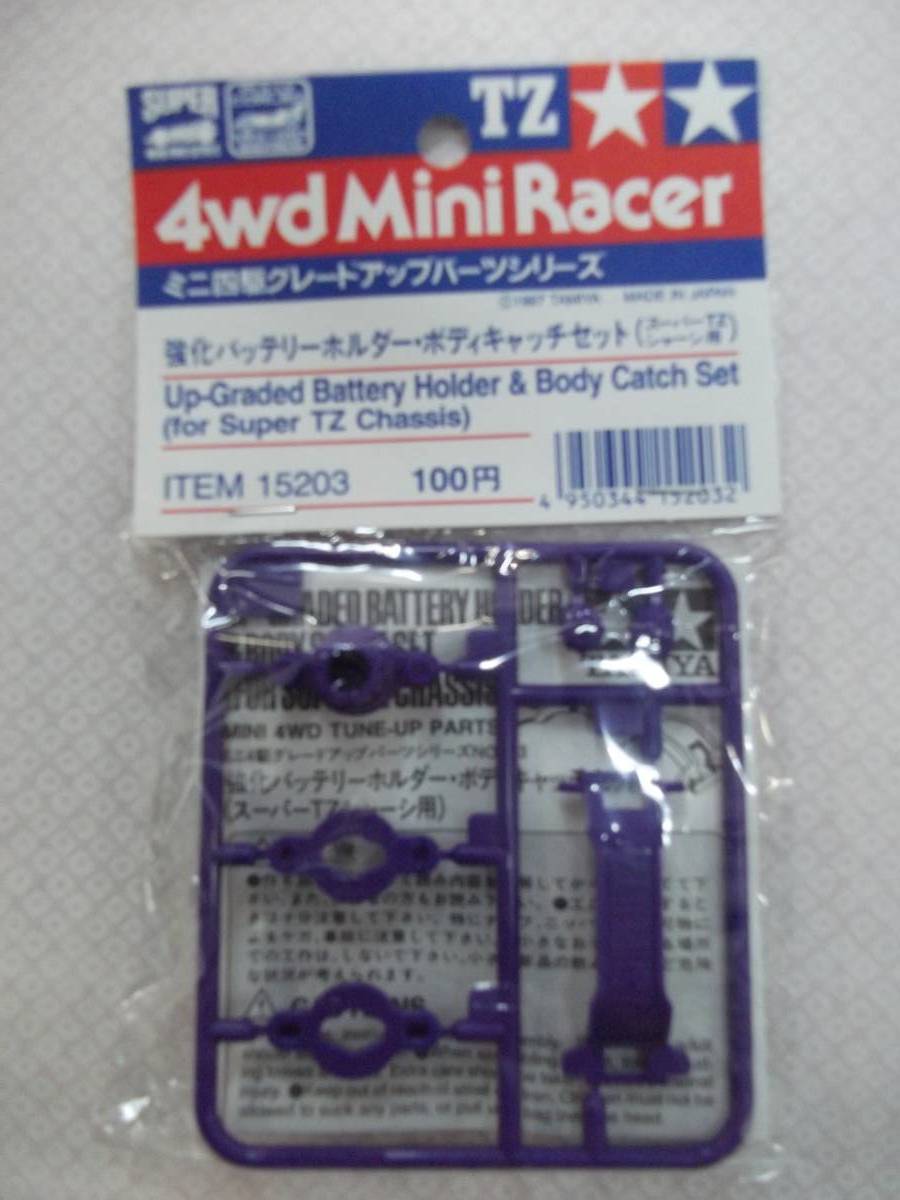 > 【在庫あり】ミニ四駆グレードアップパーツシリーズ強化バッテリーホルダー・ボディキャッチセット(スーパーTZシャーシ用)ITEM15203