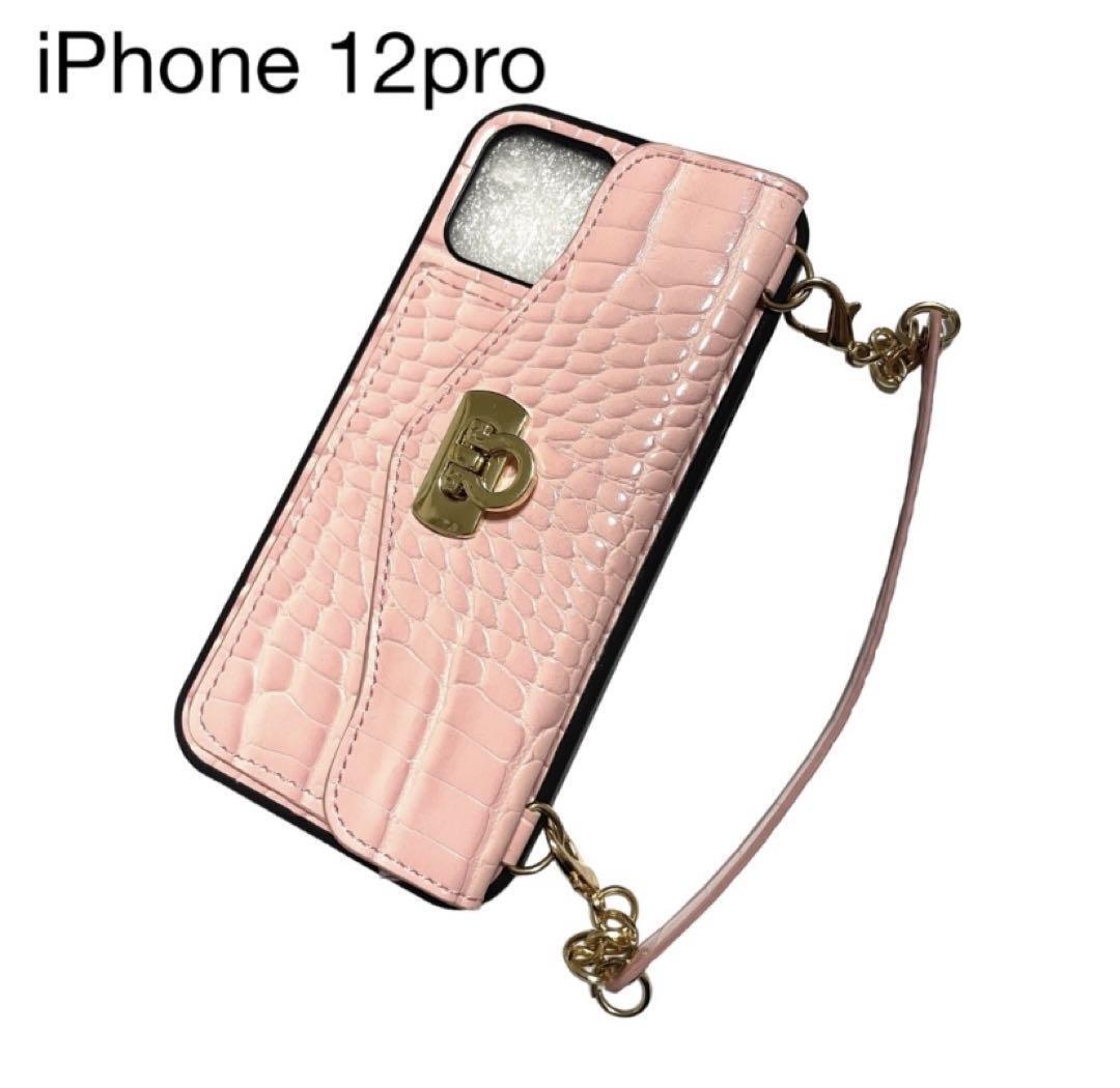 > iPhone12pro クロコ風カード入チェーン付き スマホケース