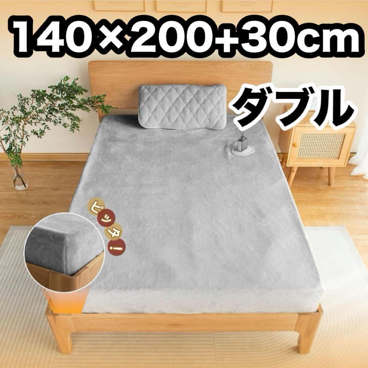 > ボックスシーツ ダブル あったか ベッドシーツ グレー 140×200+30cm 吸湿速乾 静電気防止 極上肌触り 抗菌防臭防ダニ 洗える ふわふわ