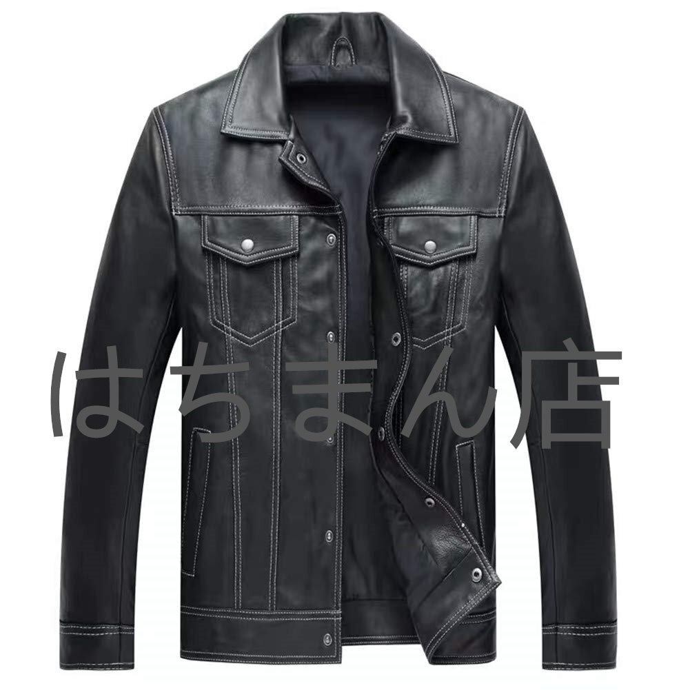 - シングルライダースジャケット レザージャケット メンズ 本革 ラムレザー デニム風 ライダー 革ジャン 皮ジャン メンズアウター L-4XL