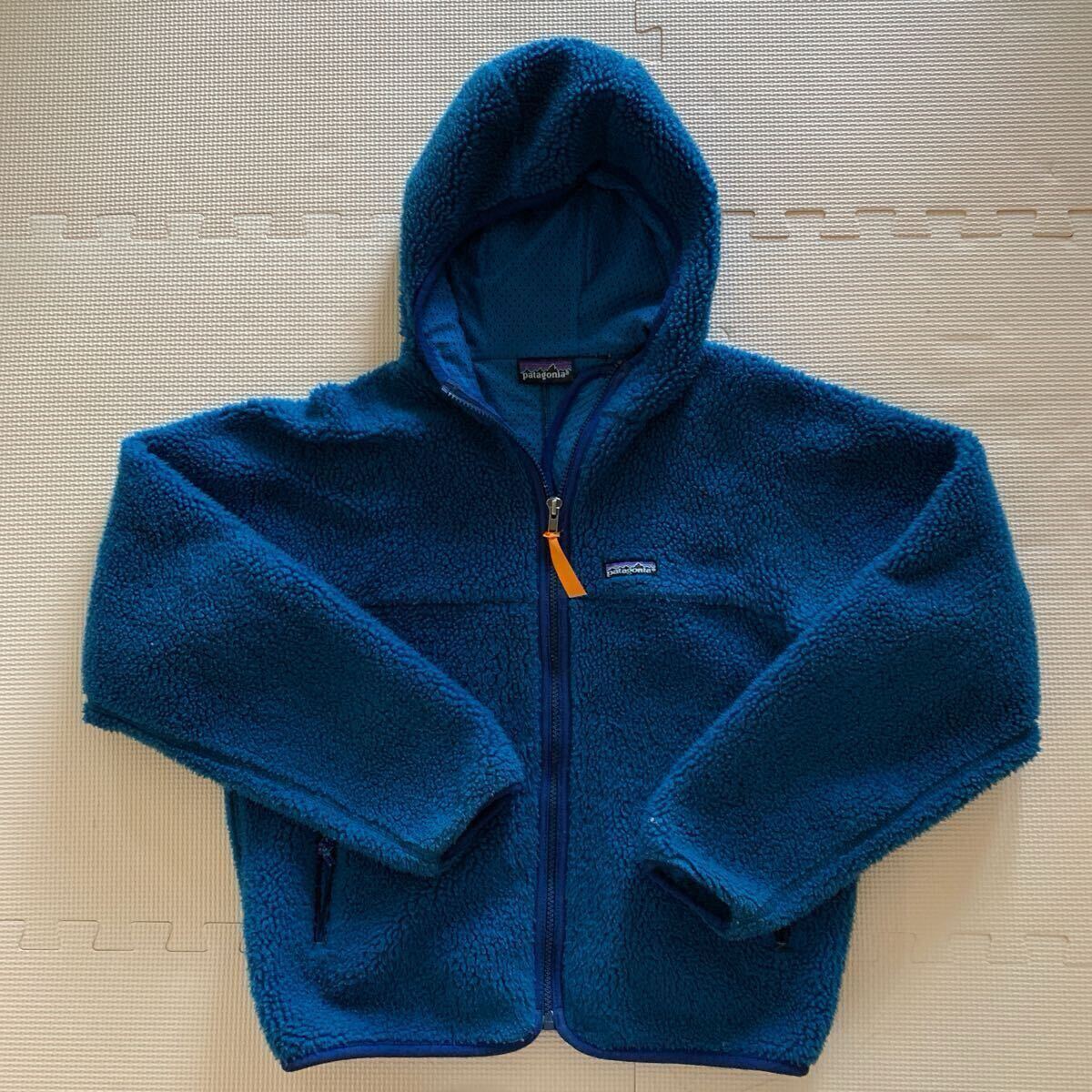 > 90s【Patagonia Kids】パタゴニア キッズ ボア パーカー ブルー USA製 F2 フーディ リズムフーディタイプ レトロカーディガン vintage
