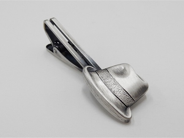 - ネクタイピン シルクハット 2パーツ構造 アンティークシルバー 銀古美 日本製 タイバー おもしろ 帽子 TP05